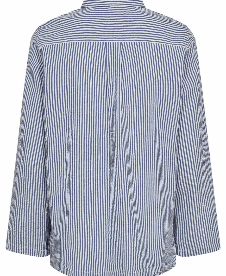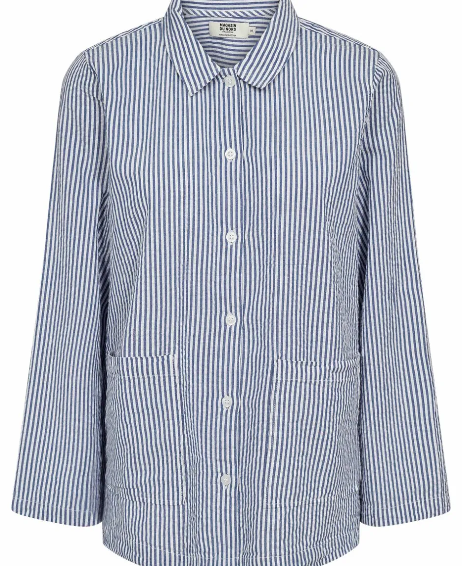 Skjorte fra Magasin du Nord Collection i den blødeste kvalitet af 100% økologisk bomuld med GOTS-certificering. Skjorten har det fineste, stribede print, lange ærmer, knaplukning, frontlommer, slidser i siden samt en vid pasform. En skøn skjorte i den lækreste kvalitet.