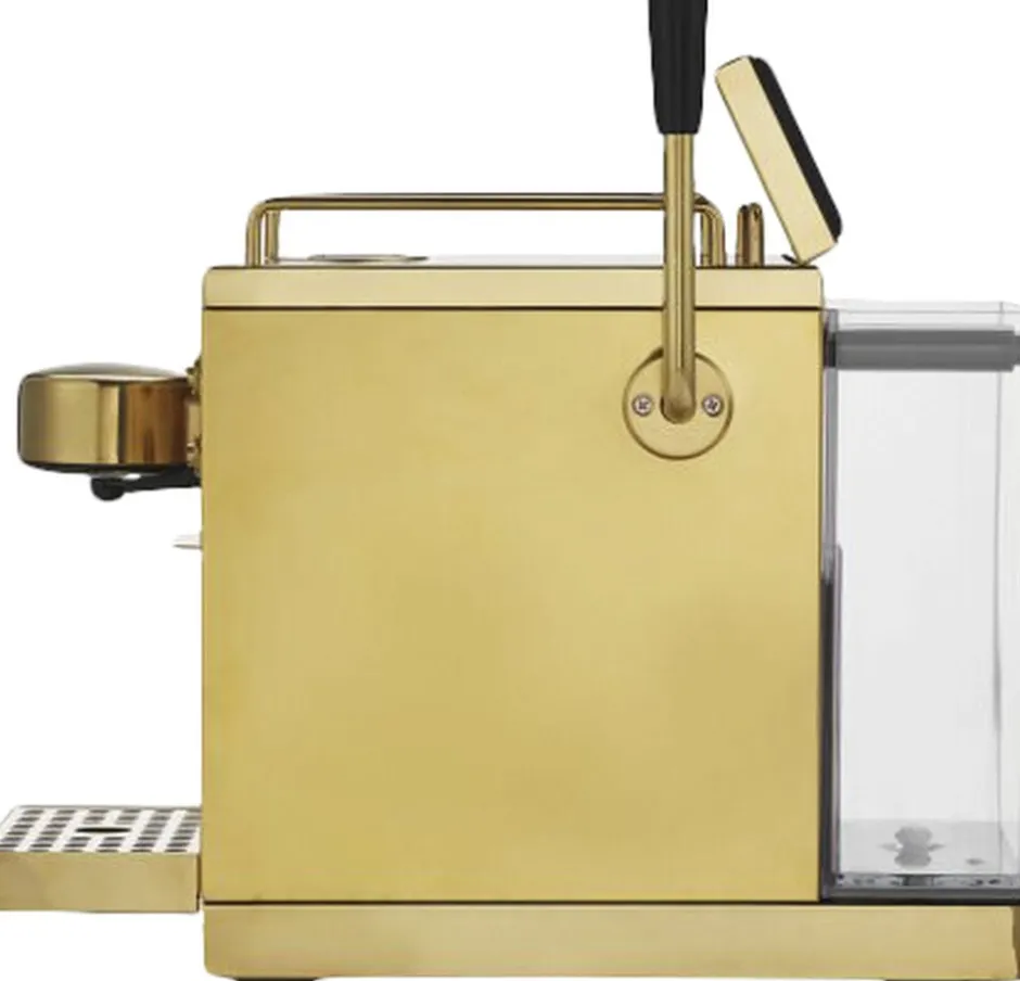 Sjöstrand Espresso Capsule Machine – Brass er et design fra Sjöstrand Coffee Concept. Denne espressomaskine repræsenterer en modernisering af en klassiker og er konstrueret i rustfrit stål med messingfinish, spejlfinish og en stram, lineær æstetik. Den inkorporerer den perfekte blanding af skandinavisk minimalistisk design og italiensk kaffekultur. Maskinen er udstyret med en kraftig 19 bars højtrykspumpe, der sammen med vand ved den korrekte temperatur sikrer kaffe med en afbalanceret smagsprofil. Sjöstrand Espresso Capsule Machine – Brass er kompatibel med alle Sjöstrand-kapsler såvel som standard Nespresso-kapsler.