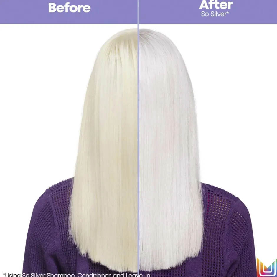 Sådan gør du: Anvendelse: Spray produktet på håndklædetørt hår, red gennem, og style som vanligt. Brug så ofte som muligt for at vedligeholde kølige undertoner. Brug alene eller efter So Silver-shampoo eller -balsam. Skyl straks med rigeligt vand ved kontakt med øjnene. So Silver All-In-One Toning Leave-In Spray er til let toning og næring. For maksimal toning, vask med So Silver-shampoo, plej med So Silver-balsam og påfør så So Silver All-In-One Toning Leave-In Spray.