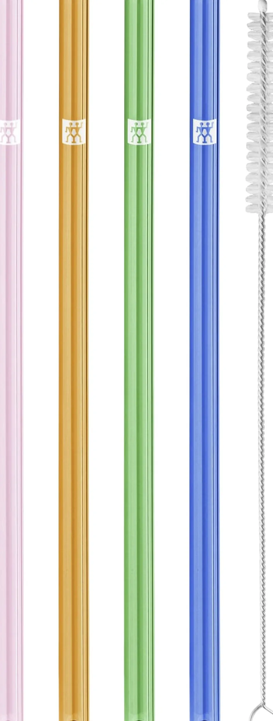 ZWILLING Sorrento-glassugerørs sættet indeholder 4 lige, og farvede sugerør, i borosilikatglas og en rensebørste. Sættet er alsidigt og bæredygtigt, i det at det kan genbruges, samt bruges til både kolde og varme drikke. Det robuste borosilikatglas er smagsneutralt, og giver sugerøret den nødvendige robusthed, gør det hygiejnisk, samt sikrer en behagelig drikkefølelse. Sugerørene kan vaskes i opvaskemaskinens bestikkurv eller rengøres med den medfølgende rensebørste. Sugerørene har en længde på 23 cm, samt en tung vægtykkelse for enestående holdbarhed.