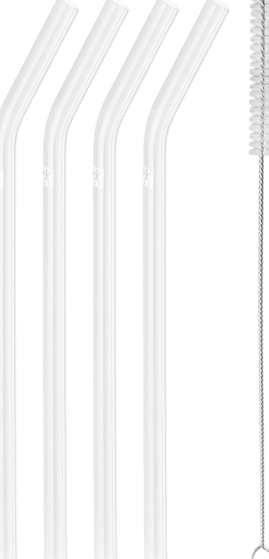 ZWILLING Sorrento-glassugerørs sættet indeholder 4 gennemsigtige sugerør med knæk, i borosilikatglas og en rensebørste. Sættet er alsidigt og bæredygtigt, i det at det kan genbruges, samt bruges til både kolde og varme drikke. Det robuste borosilikatglas er smagsneutralt, og giver sugerøret den nødvendige robusthed, gør det hygiejnisk, samt sikrer en behagelig drikkefølelse. Sugerørene kan vaskes i opvaskemaskinens bestikkurv eller rengøres med den medfølgende rensebørste. Sugerørene har en længde på 23 cm, samt en tung vægtykkelse for enestående holdbarhed.