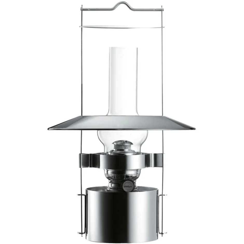 Steltons skibslampe i satinpoleret rustfrit stål er den helt klassiske skibslampe i et opdateret, minimalistisk og cylindrisk design der skærmer for blæsten – hvad enten du befinder dig i maritime omgivelser eller i din have. Skibslampen til petroleum / lampeolie findes i to størrelser – og kan placeres på bordet, jorden eller hænges op ved hjælp af en særlig stålholder.