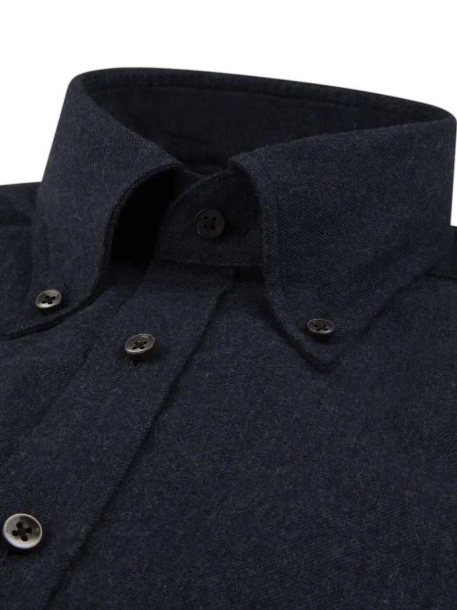 Denne flannelskjorte er fremstillet i twofold-bomuld. Skjorten har perlemorsknapper, enkelte manchetter og button down-krave.