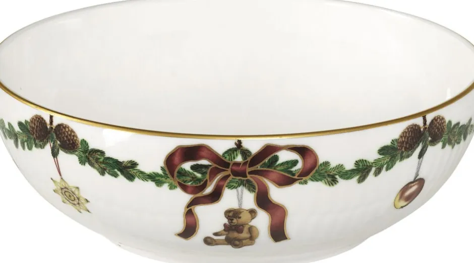 Skålen er oplagt til servering af nødder, frugt eller som morgenmadsskål. Skålen er dekoreret med et udvalg af juledekorationer som inkluderer en bamse og småkager