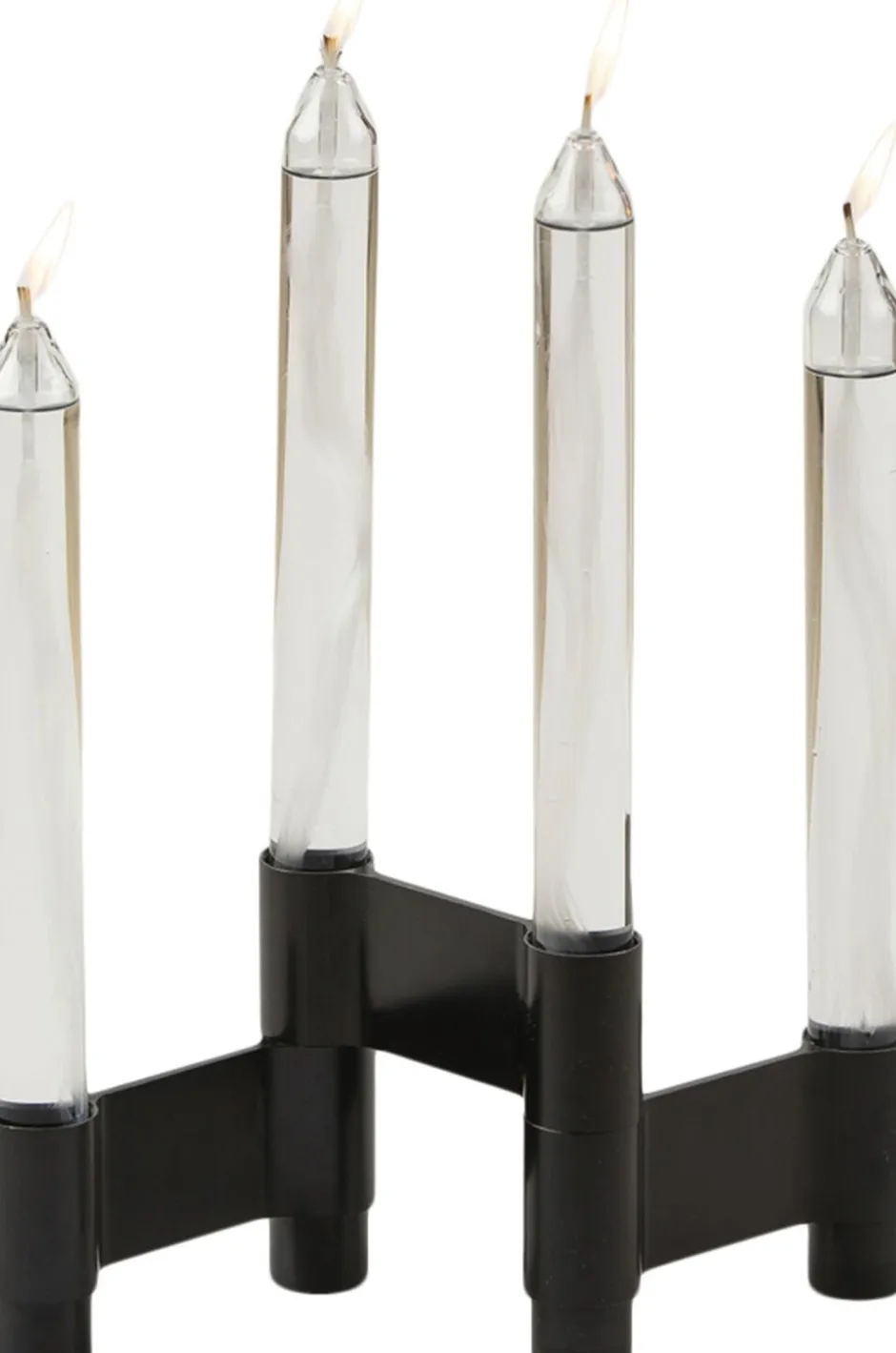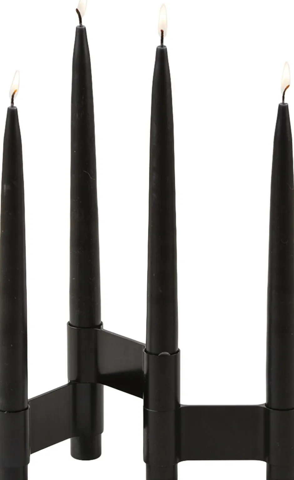Serien af LINK lysestager er en kollektion af modulære stager, der kan stå enkeltvis eller sættes sammen til en større stage. Lysestagerne er lavet af aluminium og denne variant er i farven sort. EN SKULPTUREL LYSESTAGELINK stagen fås her i sort aluminium, og har et stilrent og enkelt udtryk. Selve stagen er 4 cm høj og kan derfor sagtens bruges på spisebordet, du kan nemt justere bredden og volumen på lysetstagen ved at flytte på modulerne. Med den skulpturelle form står den også flot i sig selv, helt alene som enkelt LINK eller sammensat af flere moduler. INDRET MED METALLER Forsøg dig frem i indretningen med metaller. Materialet aluminium er et stilrent og smagfuldt materiale, der kan kombineres med mange andre objekter. Prøv dig frem og skab et stilleben med LINK stagen kombineret med lidt loppefund eller en glasvase, f.eks Standing bubble der med sin runde form vil bløde det rene udtryk lidt op. Med LINK stagen kan du skabe dit helt eget udtryk – modulerne sættes nemt sammen og man kan derfor også nemt ændre udtrykket når behovet for fornyelse melder sig. Man kan også sætte den sorte stage sammen med modulerne af messing eller sølv. Stagen findes i 4 forskellige anodiseringer – sort, mat guld, mat sølv og blank sølv.PAKKEN INDEHOLDERDu får 3 LINKS moduler pr pakke, hvilket giver plads til 4 lys. Du kan desværre ikke tilkøbe enkle links, da de er pakket i sæt af 3.MÅLStagen har standardmål og passer derfor eksempelvis til det klassiske kronelys. Du kan også bruges vores nye farvede glaslys.FARVE: Sort HØJDE: 40 MMLÆNGDE: 110 MMDIAMETER på røret: 23 MMVÆGT: 0,375 KG LINK kommer i en diskret papæske så de let kan pakkes og sendes, der er 3 moduler pr. pakke. Lysestagen er lavet af overfladebehandlet aluminium. Behandlingen beskytter metallet mod rust og UV stråler, lysestagen vil derfor beholde sin smukke glans og grå farve over tid.Studio About er et dansk designstudio og alle produkter er designet af arkitekt Mikkel Lang Mikkelsen.