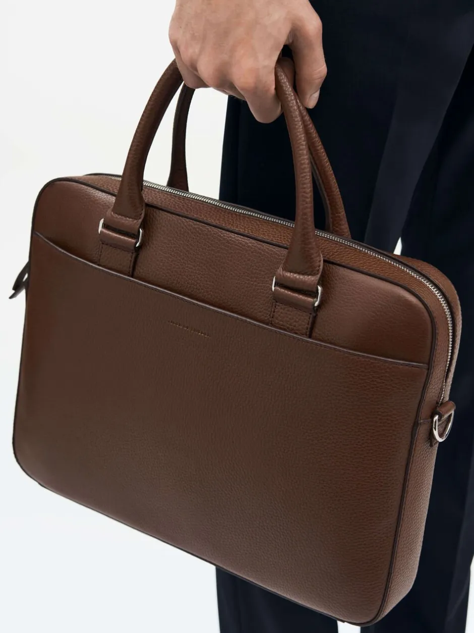 Bosun er en dokumentmappe i blødt præget læder. Bosun har et stort rum, der lukkes med lynlås, et indvedndigt rum med lynlåslomme og en åben lomme. Skulderrammen er aftagelig og foran på dokumentmappen er et Tiger of Sweden logo. Mappen målder 28 cm x 38 cm x 5,5 cm. I mappen er der plads til en 15″ laptop. Der er tovejslynlås, som giver let adgang til laptop og dokumenter. Bosun er fremstillet i Indien.