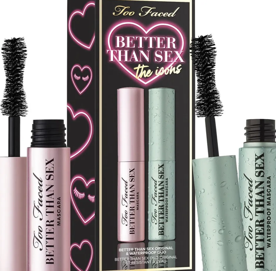 Opnå en overdådig volumen og dramatiske vipper overalt med denne fantastiske duo i rejsestørrelse, der indeholder den bedst sælgende prestige-mascara i USA, Better Than Sex, og dens vandfaste modstykke. Den timeglasformede børste adskiller, dækker og bukker hver enkelt vippe til voluptuøs perfektion, mens den prisbelønnede formel skaber fyldige, definerede og ufatteligt lange vipper. Der er en grund til, at du aldrig vil forlade hjemmet uden dem.