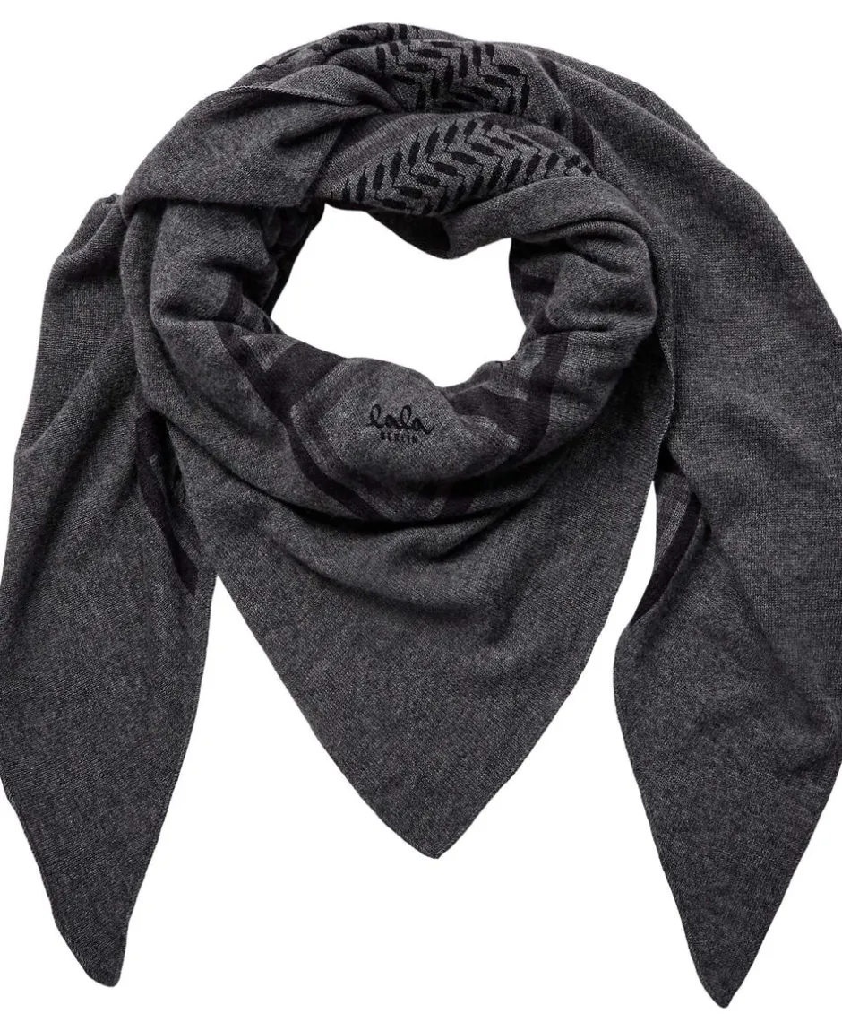 Et stort, luksuriøst blødt, trekantet cashmere tørklæde med et klassisk sort Kufiya-print.