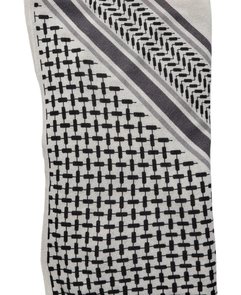 Et stort, luksuriøst blødt, trekantet cashmere tørklæde med et klassisk sort Kufiya-print.