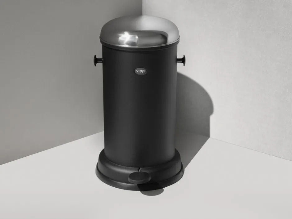 Vipp15 pedalspanden 14 l. er udstyret med et låg af rustfrit stål, en dæmpemekanisme, som får låget til at lukke i en blød og lydløs bevægelse, samt en gummiring, der garanterer lufttæthed. Kroppen er fremstillet i pulverlakeret stål og skjuler den udtagelige inderspand i galvaniseret stål. En gummiring i bunden sørger for at sarte overflader skånes.