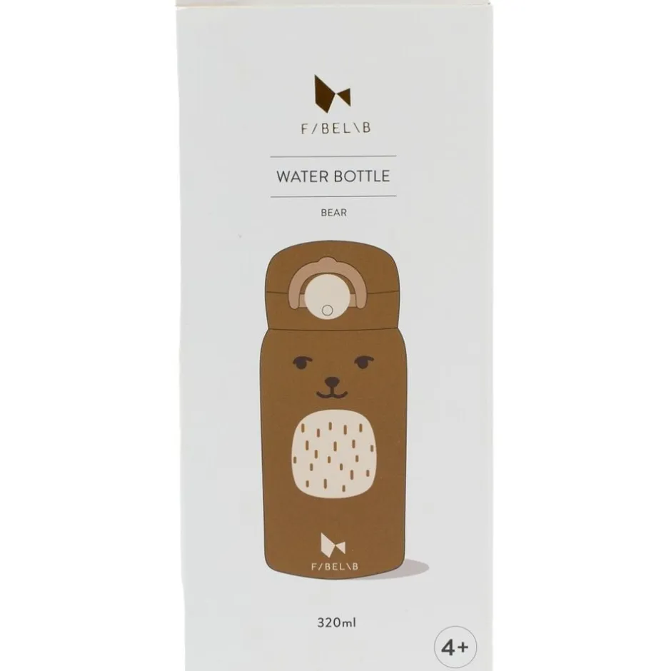 Fabelabs nye vandflaske – Bear – Oker er perfekt at tage med på farten eller til børnehave og skole. Vandflasken er nem for de små at bruge og drikke fra med den lette, men sikre åbning, der forhindrer, at vandflasken åbner sig inde i skoletasken. Der er tilføjet et drikkespræk for sikker drikning, og den passer perfekt ind i siderne på vores nye Rygsæk – Stor. Vandflasken rummer 320 ml og er lavet af 18/10-klasse rustfrit stål og BPA-fri PP plastiklåg og silikoneforsegling. Vandflasken holder drikkevarer kolde i 24 timer og varme i 10 timer og modtager eller afgiver ikke smag ved brug. Pleje og brug: Vask vandflasken i koldt eller lunt vand med en blød svamp eller børste for at rense indersiden. Hold vandflasken ren for at undgå lugt, og opbevar vandflasken uden skruet på låget for optimal tørring. Til grundig rengøring kan du fylde vandflasken med varmt vand indeholdende 10 % eddike i 30 minutter og endelig rengøre med rent vand og en blød børste. Advarsel: Brug den ikke til kulsyreholdige drikkevarer, saltede supper osv. Rengør ikke vandflasken i opvaskemaskinen, da dette vil reducere den termiske effekt. Brug ikke slibemidler eller skuremidler. Mad sikker – EU-standard, LFGB – Fødevarekvalitetstest, DG CCRF – Fødevarekvalitetstest Ikke egnet til børn under 4 år