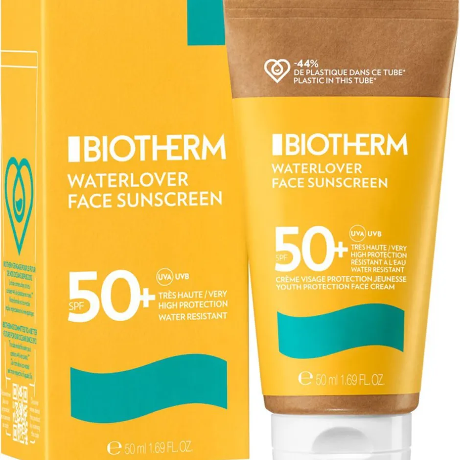 Biotherm Waterlover Creme Solaire Anti-Age SPF50 50ml til ansigtet er en solcreme i en bæredygtig papirbaseret tube. Kan anvendes af alle uanset hudtype. Beskytter effektivt mod solen (UVA & UVB). Beriget med E-vitamin og antioxidanter, der virker helende på huden samt beskytter mod frie radikaler, som nedsætter ældningsprocessen. Et særligt anti-age solfilter er tilføjet, som mindsker chancen for dannelsen af pigmentforandring/pigmentpletter. Cremens konsistens trænger hurtigt ind i huden uden at efterlade hvide mærker. Indeholder duftnoter af citrusekstrakter.