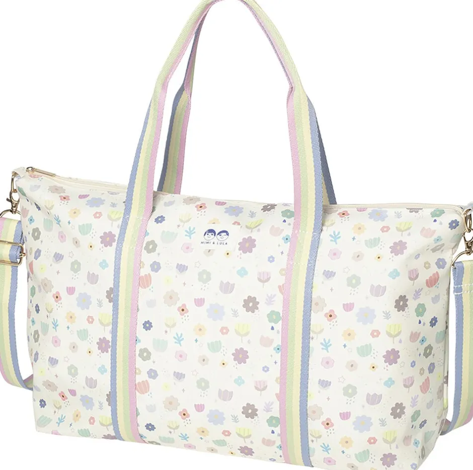 Weekendtaske med masser af blomsterprint på den lyse baggrund.Forsynet med stærk bærerem og aftagelig skulderrem.
