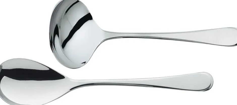 Serveringsbestiksæt som inkluderer sauceske og serveringsske.