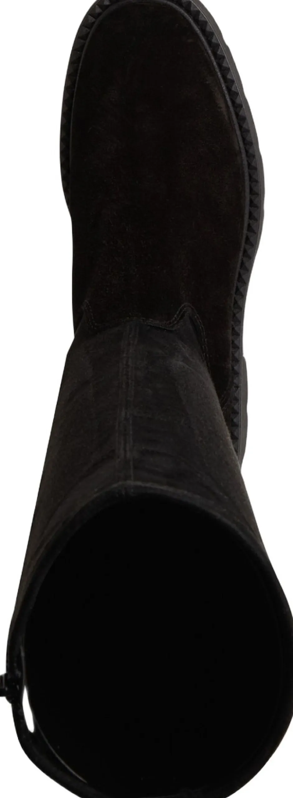 Langskaftet stretchstøvle med ruskind i foden. På en profil sål. Indvendig lynlås og skafthøjden 43 og hælhøjden 45 mm