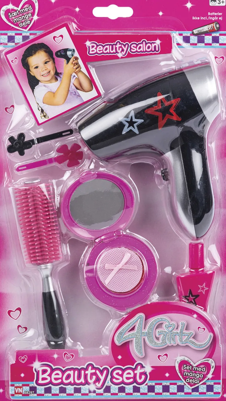 Beautysalon Inkl batteridrevet hårtørrer og andet tilbehør I alt 7 dele Bruger 2 stk AAA-batterier