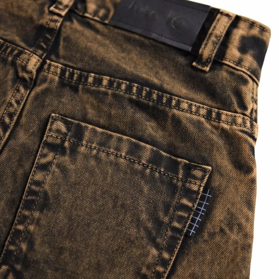 Disse denimjeans fra Molo er lavet i økologisk bomuld med en sort og rød vask. Bukserne har 5 lommer og en bred pasform, inspireret af skatermiljøet. Livvidden kan justeres med en indvendig elastik for optimal pasform til alle børn. Størrelser 92-134 har trykknap, mens størrelser 140-176 har en almindelig jeansknap.