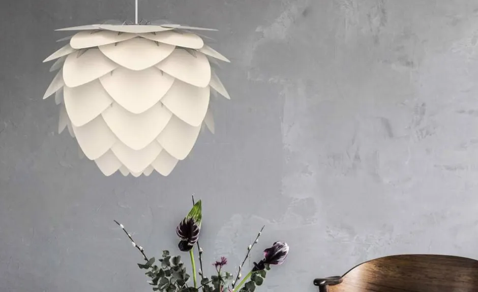Inspireret af naturen med sine karakteristiske trekantede kronblade, kaster Aluvia i børstet messing et varmt og blændende omgivende lys, der ser lige så godt ud, som det tænder.
