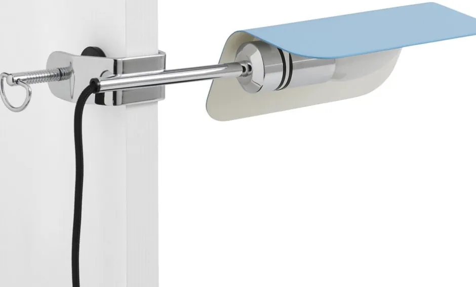 Apex-lampen er et design af den britiske designer John Tree og udgør en moderne fortolkning af den velkendte Banker’s Light. Med sit moderne twist formår John Tree at kombinere den klassiske følelse og skabe en helt ny version af det velkendte belysningsstykke. Lampens foldede stålskærme danner en smuk silhuet, og takket være klemmen kan Apex-lampen let monteres på bordets eller reolens kant, hvilket giver mulighed for at skabe en hyggelig atmosfære eller belyse en særlig del af indretningen. Skærmen kan roteres 360 grader, og lampens skrå design giver fleksibilitet til at tilpasse lysretningen efter behov. Med en 200 cm lang ledning og en E14 fatning tilbyder lampen alsidighed, men bemærk, at lyskilde ikke medfølger.