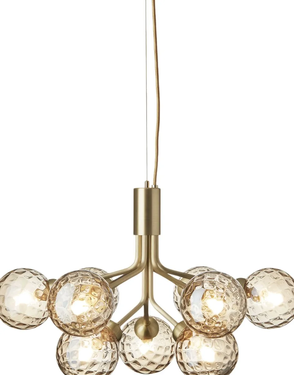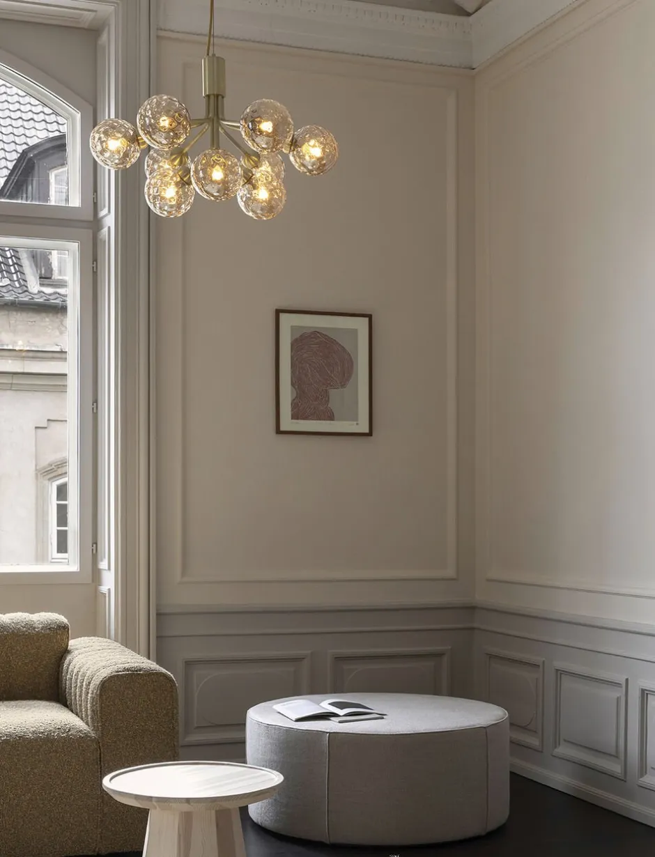 Moderne lysekrone inspireret af umbellifer blomster. Apialer 9 folder sine 9 metalarme ud af stammen, og stilkene er dækket af mundblæste glaskugler. Skab stemningsfuld belysning i stuen eller over et spisebord med lysekronen Apiales 9