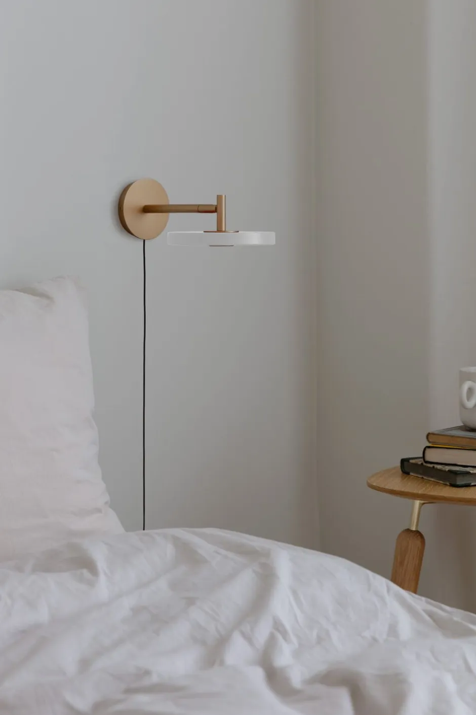 Asteria-væglampen er fremstillet med stor sans for detaljer og giver mulighed for at skræddersy belysningsoplevelsen til hvert unikt rum. Asteria-væglampen er dæmpbar og styres af en diskret knap på lampens skærm. Disse funktioner giver mulighed for ubesværet justering af belysningen, så den passer til enhver lejlighed, uanset om det er et roligt øjeblik med læsning ved sengetid, lyser et hjørne som en hyggelig læsekrog eller skaber en indbydende omfavnelse i entreen.Asteria-væglampen fås i forskellige nøje udvalgte farver og integreres problemfrit med enhver indretning og tilføjer et strejf af raffineret elegance til et miljø. Den fås i en fastfortrådet og en ikke- fastfortrådet version. I den fastfortrådede version er lampen monteret direkte på stikkontakten i væggen, og ellers er synlige ledninger skjult i væggen. Hardwiring Asteria Wall: Vigtig information Asteria Wall kan være fast forbundet direkte uden metalkabinettet inkluderet i vores fastfortrådede add-on. Den driver, der følger med tilbygningen, skal dog stadig bruges og indlejres i væggen i stedet for i metalhuset. Denne metode giver mulighed for en flush installation, holde armaturet så tæt på væggen som vores standard setup med pre-installeret ledning og stik. Bemærk, at denne proces har specifikke tekniske krav og skal udføres af en autoriseret fagmand for at sikre en sikker og korrekt installation.