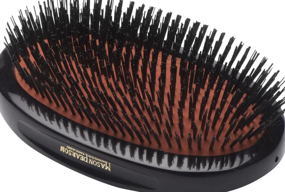 Mason Pearson B1M er den største herrebørste i sortimentet og er lavet udelukkende af rene vildsvinehår. Mason Pearson børsten i ren vildsvinehår anbefales til fint hår.B1M er specifikt designet som en herrebørste, Military style betyder at børsten ikke har et håndtag og er generelt kraftigere og mere maskulin i sit udtryk. En Mason Pearson børste masserer og stimulerer hovedbunden, hvorved hårbundens naturlige olier bliver frigivet. Ved gennembørstning bliver olien fordelt ud i længden af håret, så håret får en naturlig glans, samt fylde i bunden. Mason Pearson anbefaler 100 strøg om dagen – en investering i et godt hår hele livet!