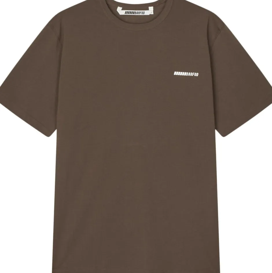 T-shirt fra Barfod i den blødeste kvalitet af 100% økologisk bomuld. T-shirten er enkel i modellen med rib i den runde halsudskæring, korte ærmer, en løs pasform samt logoprint på front og bag. En casual T-shirt af den bedste kvalitet. Mandlig model er 183 cm og bærer en størrelse large.