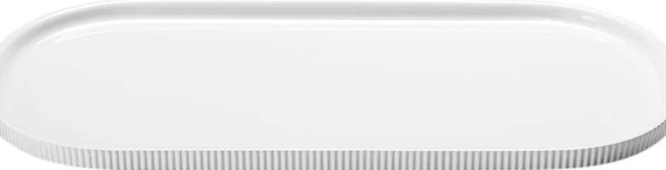 Serveringsfadet forener Bernadotte kollektionens riflede mønster med moderne design i hvidt porcelæn. Det enkle fad er et indbydende element på bordet, som præsenterer maden med elegance, og den forhøjede kant gør det nemt at bære serveringsfadet. Med sit minimalistiske design er fadet både elegant i sig selv og i kombination med tallerkener, skåle og glas fra Bernadotte kollektionen.