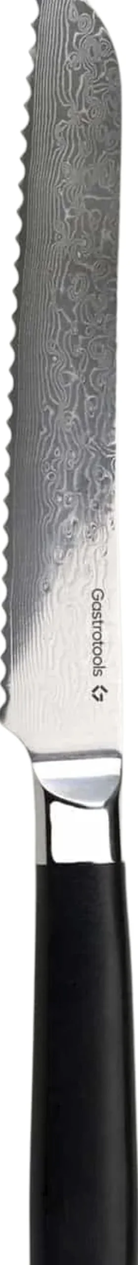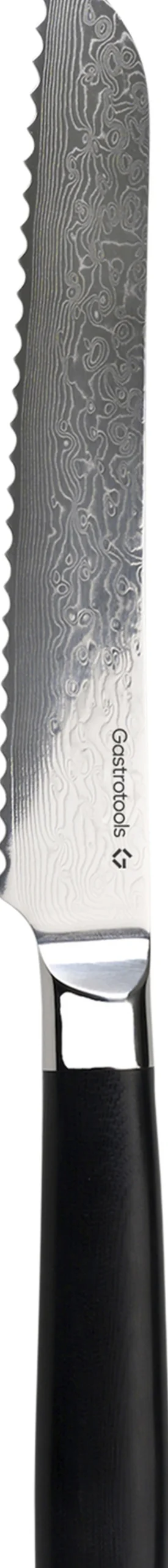Den ultimative brødkniv smedet i 67 lag stål med en kerne af VG10-stål. Dette er en brødkniv som du kan bruge, resten af livet. Kniven har en hårdhed på 61 HRC på Rockwell-skalaen, hvilket indikerer hvor skarp denne brødkniv er. Til sammenligning, ligger normale knive på 55-56 HRC.