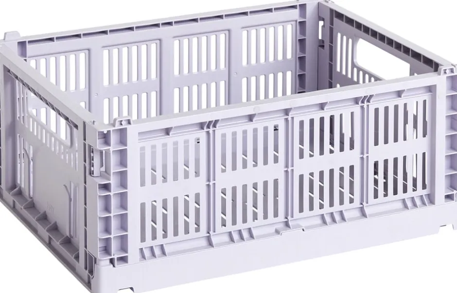 HAY Color Crate er en serie af farverige opbevaringskasser med et karakteristisk, perforeret design. Kasserne er lavet af 100% genanvendt plastaffald i en række forskellige farver og størrelser, og kan stables oven på hinanden i forskellige størrelseskombinationer. De multifunktionelle kasser er velegnede til at opbevare og organisere en lang række genstande på hylder, borde eller inde i skabe.