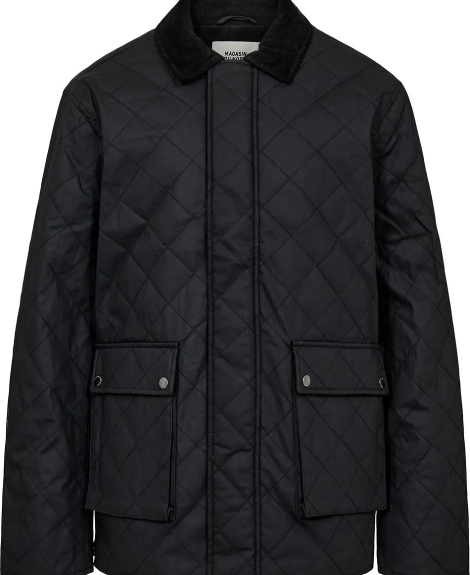 Jakke fra Magasin du Nord Collection i den lækreste kvalitet af 50% genanvendte fibre med GRS-certificering. Jakken er enkel i modellen med en coated overflade, frontlommer, et quiltet for, lange ærmer, en kravefold af fløjl, en skjult knaplukning samt en lige pasform. En skøn jakke i en lækker kvalitet.