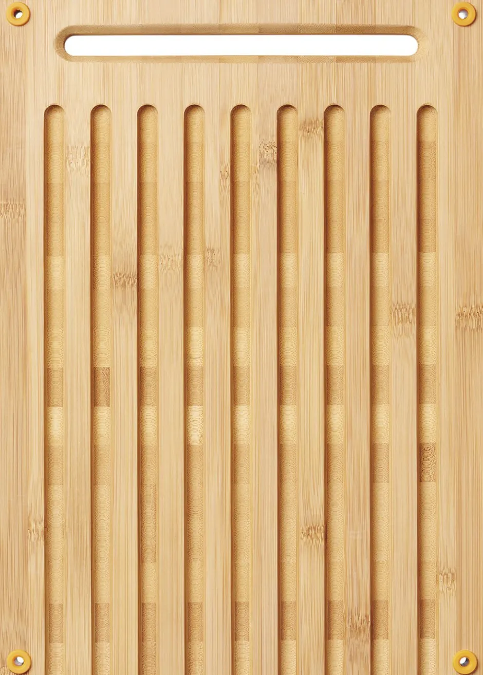 Dobbeltsidet skærebræt. En side med riller, som er perfekt til at skære brød på. Fremstillet af bambus, hvor overfladen er behandlet med linolie.