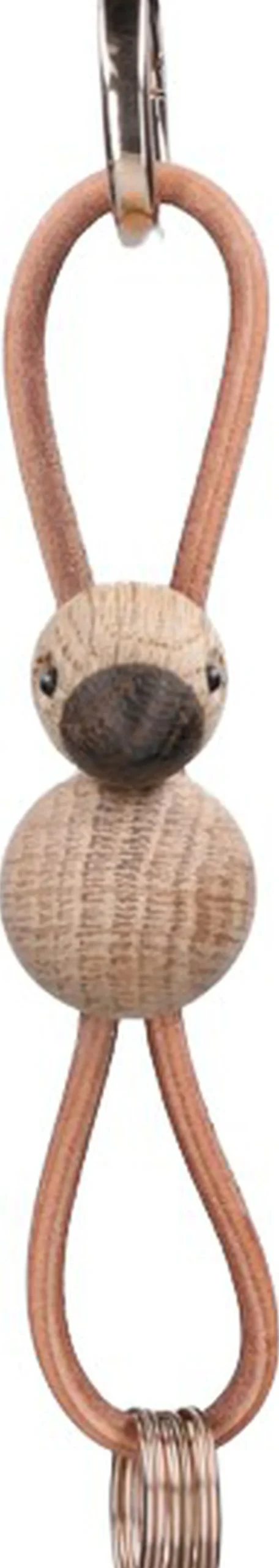Tag Kay Bojesens elskede klassikere og din kærlighed til originalt dansk design med dig overalt. På tasken. I bæltet. Eller til bilnøglen. Med en smart og dekorativ nøglering fra Kay Bojesen Denmark kan du enkelt og stilfuldt gøre hverdagen mere personlig og tage originalt dansk design med på farten, uanset om du hægter denne variant med den klassiske sangfugl eller den legendariske abe fast som din altid trofaste buddy. Kay Bojesen var en mester i at tilføje små detaljer til sine trædesigns. Han fandt magien i naturens eget materiale, og med sit enestående formgivningstalent voksede den ene forunderlige figur efter den anden frem i hans fantasi og tog form mellem hans hænder. To af hans største klassikere er uden tvivl aben og sangfuglen. Og selvom sangfuglen i denne nøgleringsudgave er nedskaleret i volumen til en højde på bare 4,5 cm, så får du stadig masser af Kay Bojesens designarv med dig, uanset hvor turen går hen. Denne Kay Bojesen-nøglering har sangfuglen i miniatureudgave skabt i FSC®-certificeret egetræ og kommer med en både æstetisk og smart naturfarvet snor i ægte læder, der kan flyttes op og ned i forhold til figuren, så du kan skabe dit helt eget udtryk. I toppen finder du en stor guldfarvet nøglering påtrykt Kay Bojesen Denmark, der ud over at være smukt dekoreret også er udstyret med en praktisk karabinhagefunktion, der let åbnes og lukkes, og i bunden under figuren hænger tre ekstra nøgleringe, så du har god til plads til alle dine nøgler. Kay Bojesen skabte i 1922 sin første figur i træ og åbnede ti år senere butik og værksted i Bredgade i København. Lige siden har Kay Bojesen været synonym med original dansk formgivning?og design og et fantasifuldt univers af ikoniske træfigurer, der med et skarpt øje for detaljen er skabt med udgangspunkt i humor og glæden ved unikt træhåndværk af højeste kvalitet. Det er derfor, vi siger, at Kay Bojesen er original siden 1922.