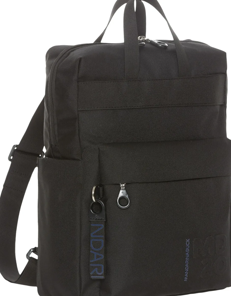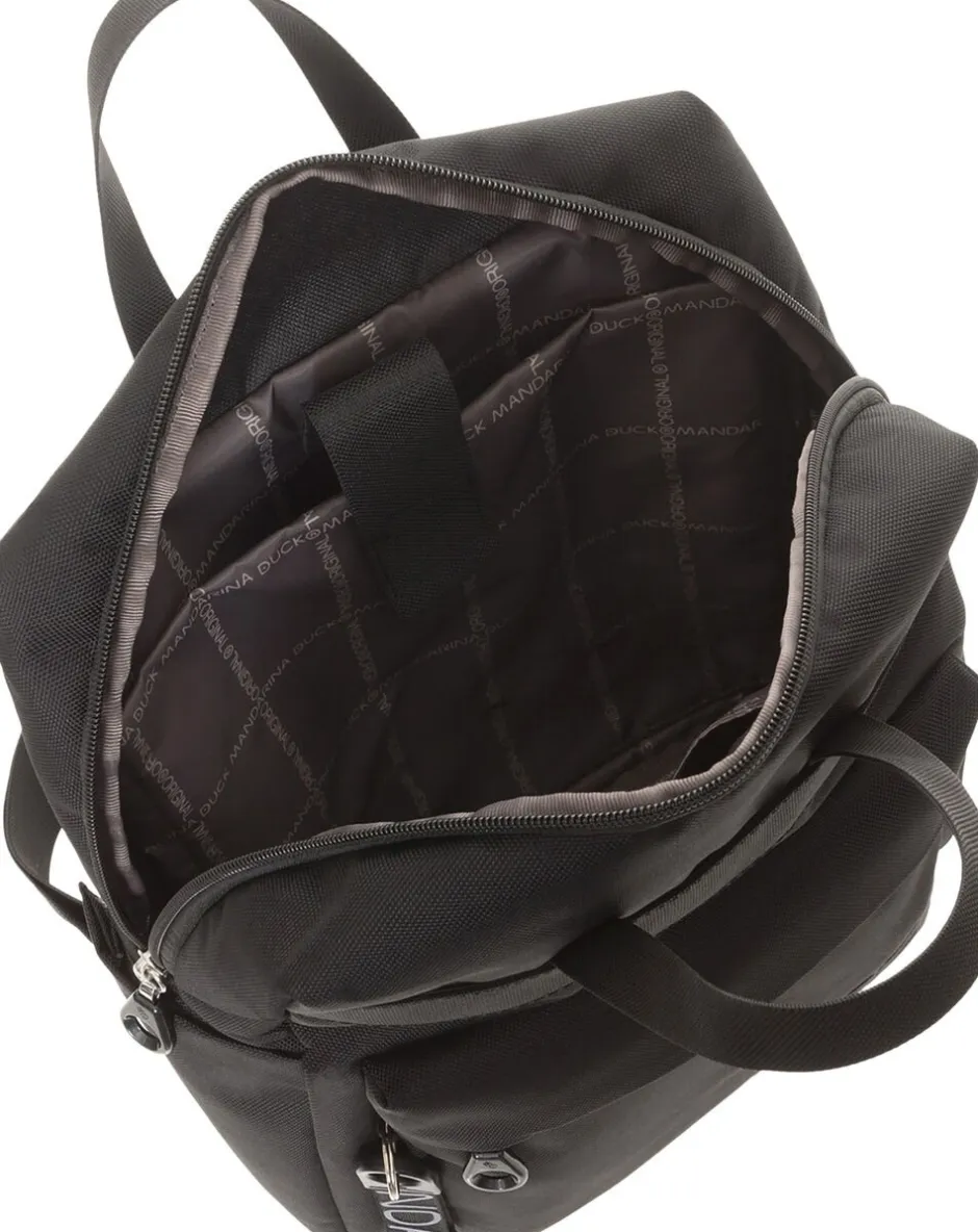 Mandarina Duck MD20 rygsæk fremstillet i det lækre MD20 materiale. Rygsækken er nem at have med, og der er plads til det mest nødvendige. Indvendigt har rygsækken bl.a. vatteret lomme med plads til 13″” computer eller ipad. Udvendigt desuden ekstra lynlåsrum samt ét rum i hver side med plads til f.eks. vandflaske. Bagpå desuden sleeve så rygsækken kan sættes fast på en kuffert. Skulderremmene er justerbare.