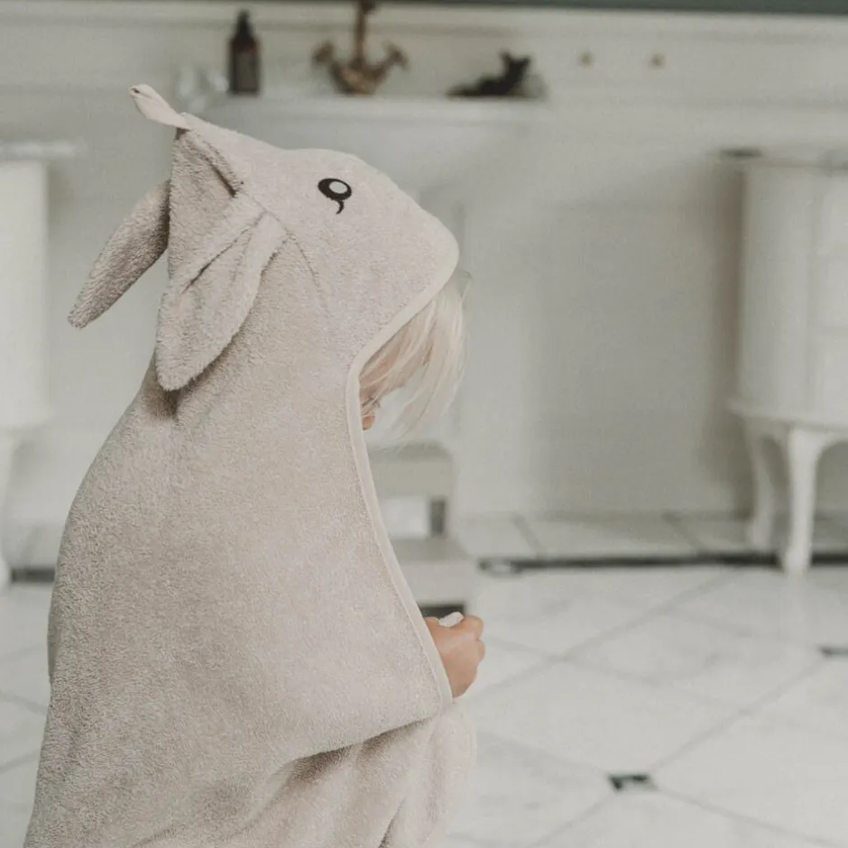 Et blødt dyreformet badehåndklæde er en dejlig og praktisk tilføjelse til ethvert barns badeværelsesrutine. Lavet af 100% blødt økologisk bomulds frotté. Dette badehåndklæde med hætte er designet til at holde de små behageligt varme efter badet. Badehåndklædet har store øre der gør badet til en leg og sjov at have på både før og efter. Mål: 70 x 70 cm