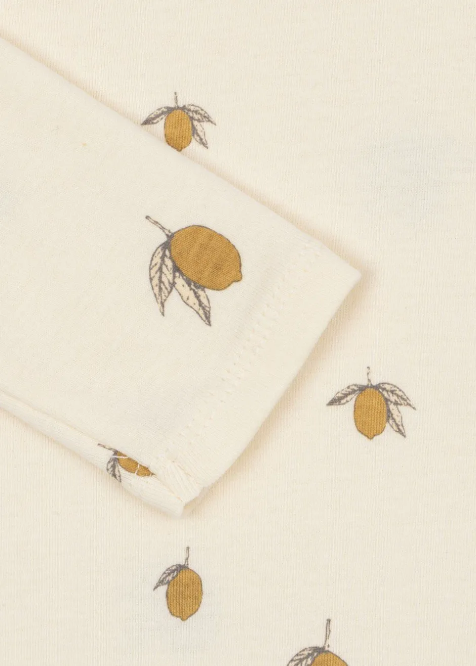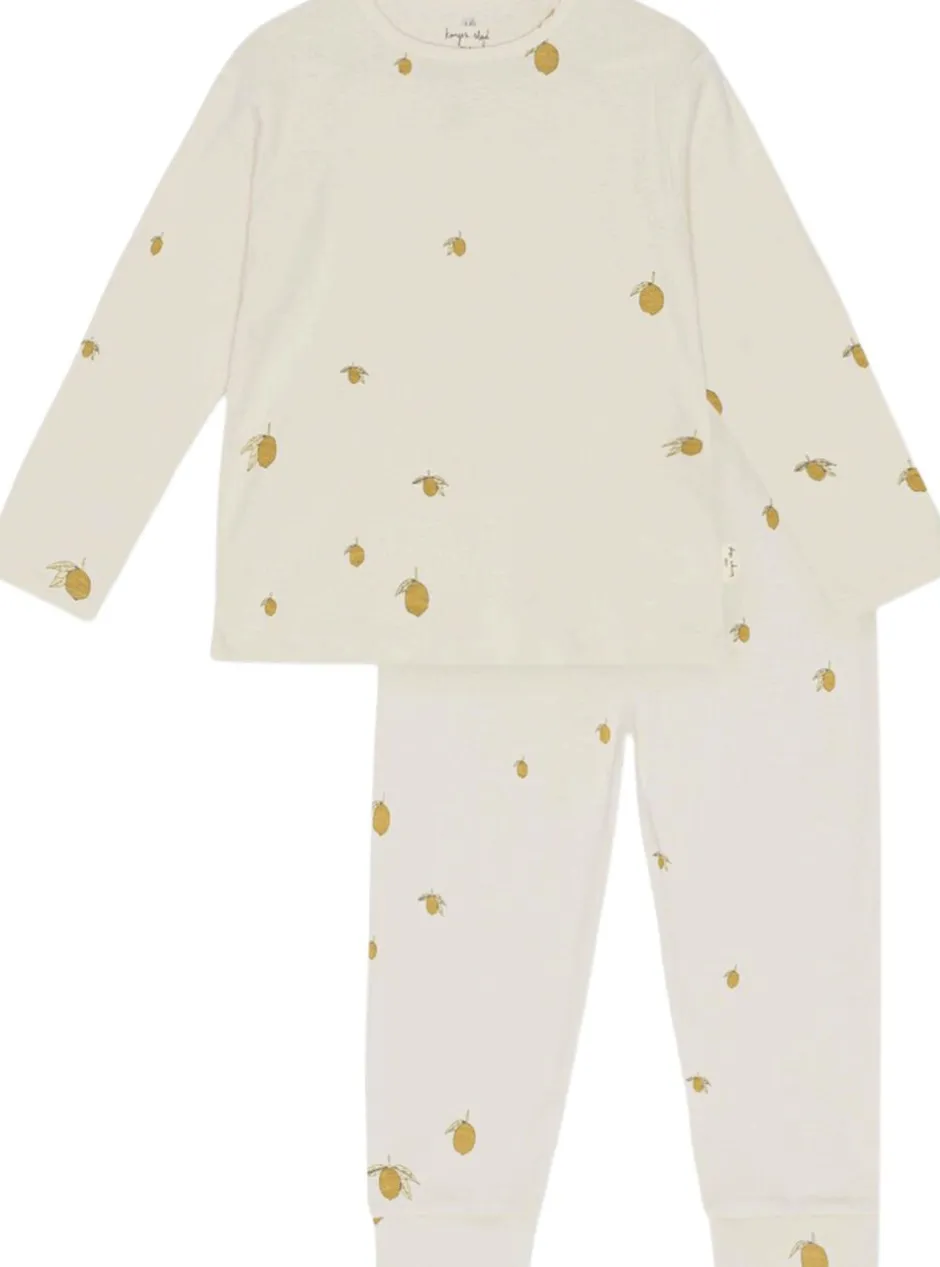 2-delt pyjamas fremstillet i 100% økologisk bomuld. Designet med bløde elastiske manchetter ved ærme- og benåbninger. Bukserne har en elastisk talje.
