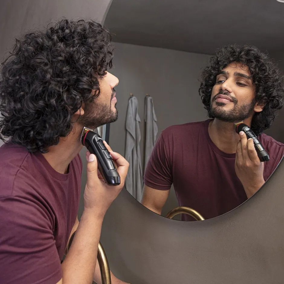 MN4X Skægtrimmer med 10 klippelængder og 90 minutter brugstid på en opladning. 10 SkæglængderDu kan klippe 10 forskellige længder med det medfølgende tilbehør. Du får 2 kamtilbehør: 37 og 812 mm. Og så er der mulighed for 2-trins finjustering: 0,8 og 1,2 mm. Skæreklingen er i høj kvalitet og er udført i rustfrit stål med titaniumbelægning for det bedst resultat. Batteritid 90 minutterDet kraftfulde litiumbatteri holder til hele 90 minutter, så du kan bruge skægtrimmeren mange gange på en opladning. Det tager 90 minutter at oplade. Batteristatus kan ses i % på LED-displayet. Det er nemt at rengøre trimmeren, som er stænksikker og hovedet kan skylles under rindende vand. Inkl. praktisk opbevaringstaske, rensebørste, USB ladekabel og olie til vedligeholdelse.
