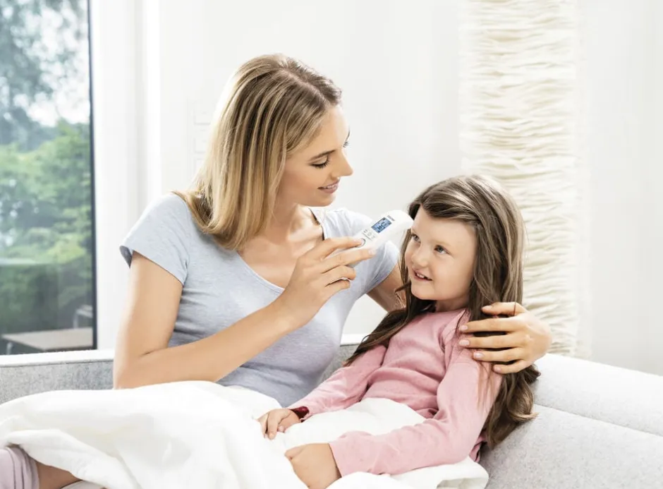 FT 95 er et kontaktfrit termometer til måling af kropstemperaturen. FT 95 kan også måle temperaturen op objekter/væsker samt rumtemperaturen. Med det kontaktfri termometer kan du måle dit barns temperatur på en hurtig, nem og hygiejnisk måde. Termometret holdes 2-3 cm fra panden og målingen foretages på få sekunder. Termometret har hukommelse for 60 målinger (for pandemålinger). FT 95 har oplyst display samt lydsignal for når målingen er foretaget. På displayet vises også tid og dato for målingerne. FT 95 har LED indikator: En ring rundt om “”SCAN”” vil lyse op enten grøn, gul eller rød, for at fortælle om der er målt feber. Grøn: Under 37,5°C. Gul: Mellem 37,5°C-37,9°C. Rød: 38°C eller derover. FT 95 kan kobles op på apps’ne Beurer HealthManager og Beurer BabyCare. Når termometret er forbundet til appen, vil den målte temperatur automatisk blive overført til appen (såfremt appen er åben på skærmen). Begge apps er kompatible med iOS 9.0 og derover samt Android 5.0 og derover.