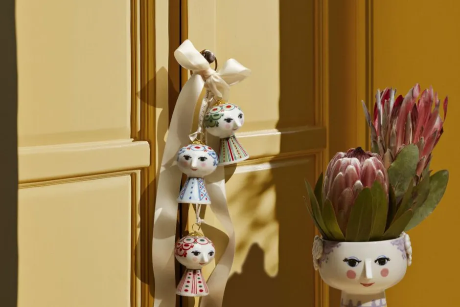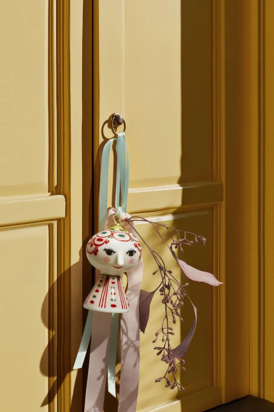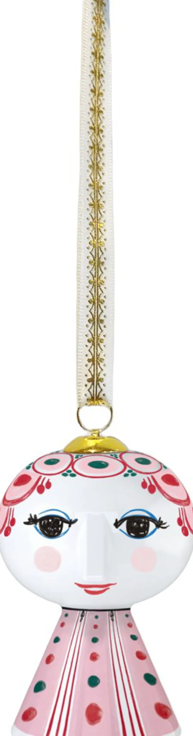 Udfold din farverige personlighed og skab plads til glæde med Bjørn Wiinblads Eva. Så snart du inviterer Eva indenfor, vil du med den populære serie med Bjørn Wiinblads gennemgående streg øjeblikkeligt skabe plads til glæde overalt i hjemmet. Gennem hele sit virke udforskede Bjørn Wiinblad farver, former og mønstre, og med den ikoniske Eva-figur som ophæng kan nemt og dekorativt du lade kreativiteten få frit spil overalt i boligen. Bjørn Wiinblad repræsenterer alt, hvad der er skørt, skævt, kreativt og vidunderligt. Og med dette smukke Eva-ophæng i overvejende røde nuancer inspireret af kunst fra Bjørn Wiinblads legendariske designarkiv får du hurtigt, enkelt og dekorativt skabt et en stemning af glæde og kreativitet, der strømmer ud i ethvert hjørne i dit hjem. Ophænget måler 7,5 cm i højden og er lavet af blankglaseret porcelæn med farvet decal og er inspireret af Bjørn Wiinblads originale Eva-univers, hvor brede hoveder med blomsterdekorationer og en kegleformet krop dannede grundstenene. Ansigtet med de mandelformede øjne og den spidse næse er Wiinblads oprindelige streg, og det farverige kjolemønster er en nyfortolkning af Bjørn Wiinblads illustrationer fra arkiverne. Med sit glade smil, de blussende kinder og farverige dekorationer rummer Eva på alle måder essensen af Bjørn Wiinblad som person og kunstner. Der er noget larger than life over hendes selvsikre, poetiske og drømmende fremtoning, der uanset størrelse gør hende til et statement piece, der fanger øjet i indretningen. Hun pynter og skaber glæde på juletræet, i vinduet og på grene, hvor hun hængende i bånd med guldprint med original Bjørn Wiinblad-dekoration lyser op og gør livet mere farverigt præcis som Bjørn Wiinblad elskede det. Bjørn Wiinblad var en livsglad kunstner med en stor og farverig personlighed, der gik sine egne veje og ikke var bange for at drømme og tænke stort. Den sjæl mærkes også i Eva, der hviler i sig selv og inviterer os til at udtrykke vores egen stil og personlighed med fokus på kreative dekorationer. En ting er sikkert: Det bliver ikke kedeligt, når Eva flytter ind.