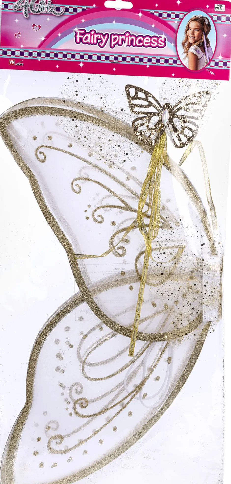 Børn 4-GIRLZ Rolleleg & Musik>store guldvinger og guldfestav. Vingerne måler udfoldet 58×59