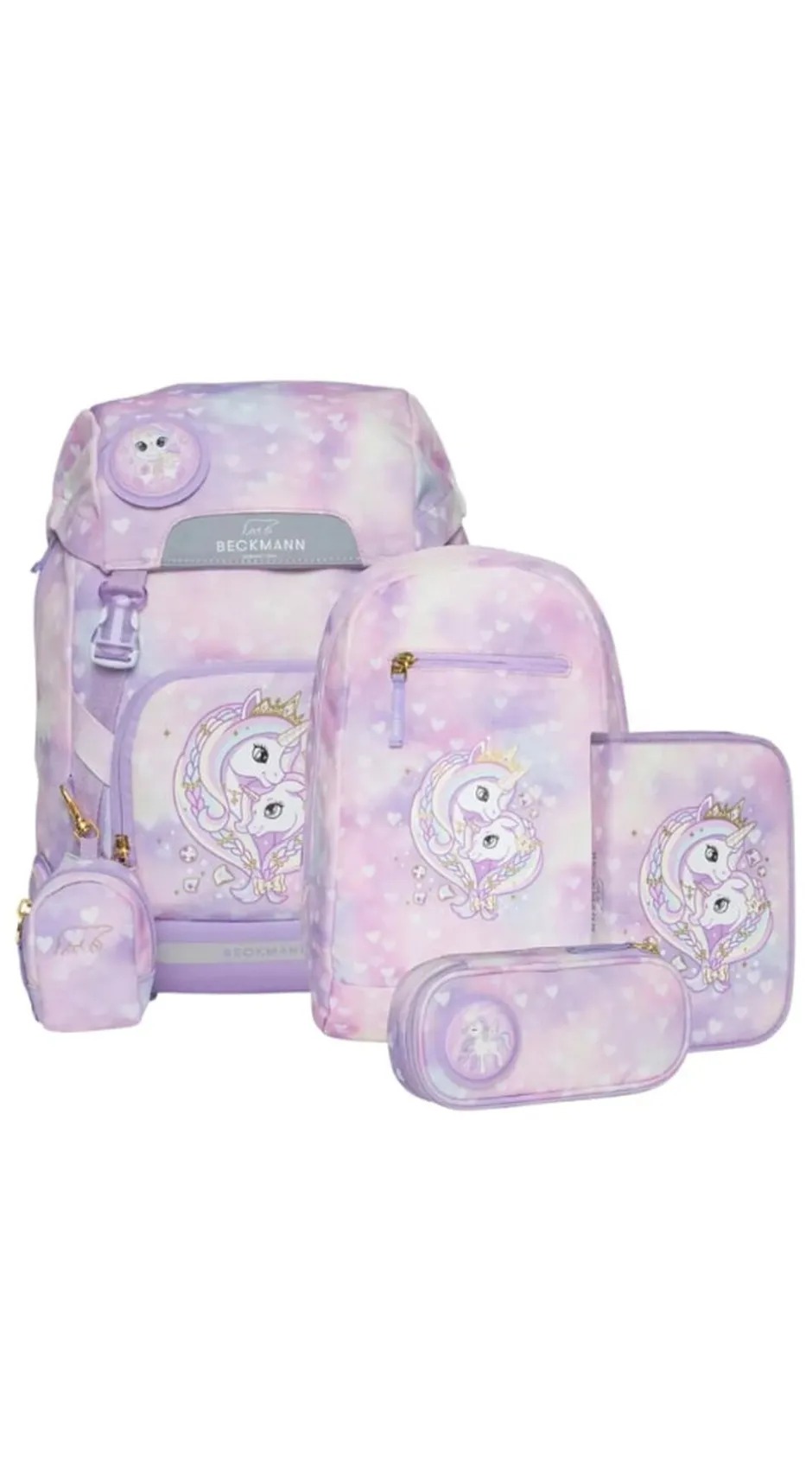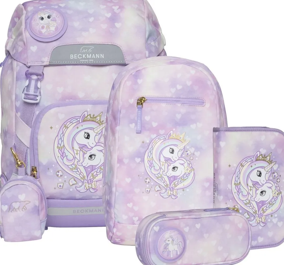 Sættet indeholder: Skoletaske, gymnastik/turtaske, onezip penalhus med fyld og ovalt penalhus, alt sammen i matchende motiver.