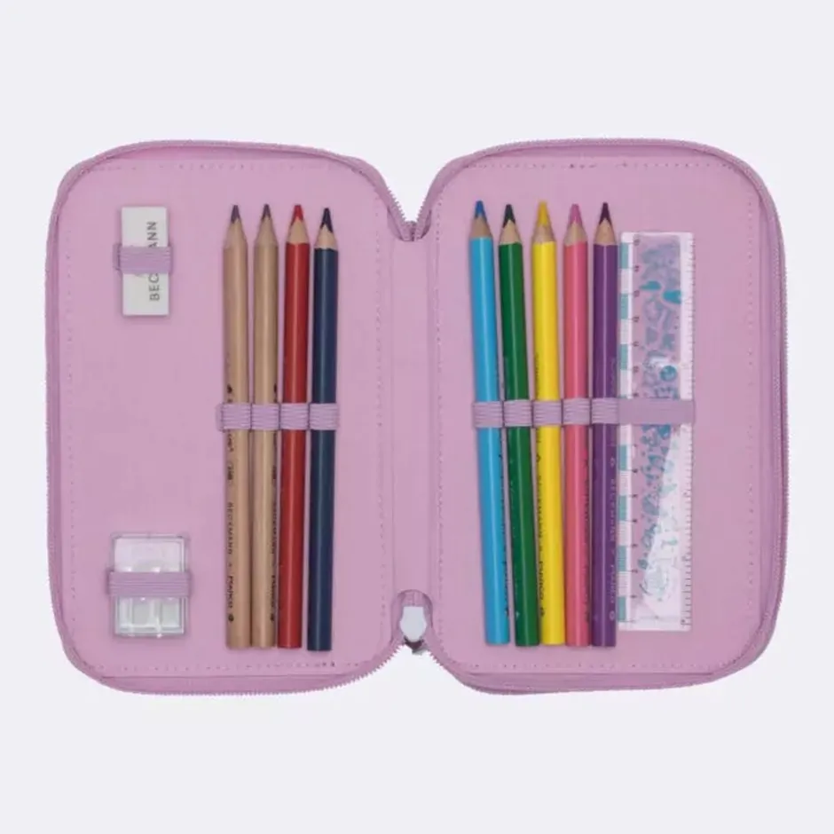 Penalhuset er fuldt af overraskelser og indeholder selvfølgelig alt, du har brug for til skolen og lektierne. Blyanter og farveblyanter er lavet af træ.