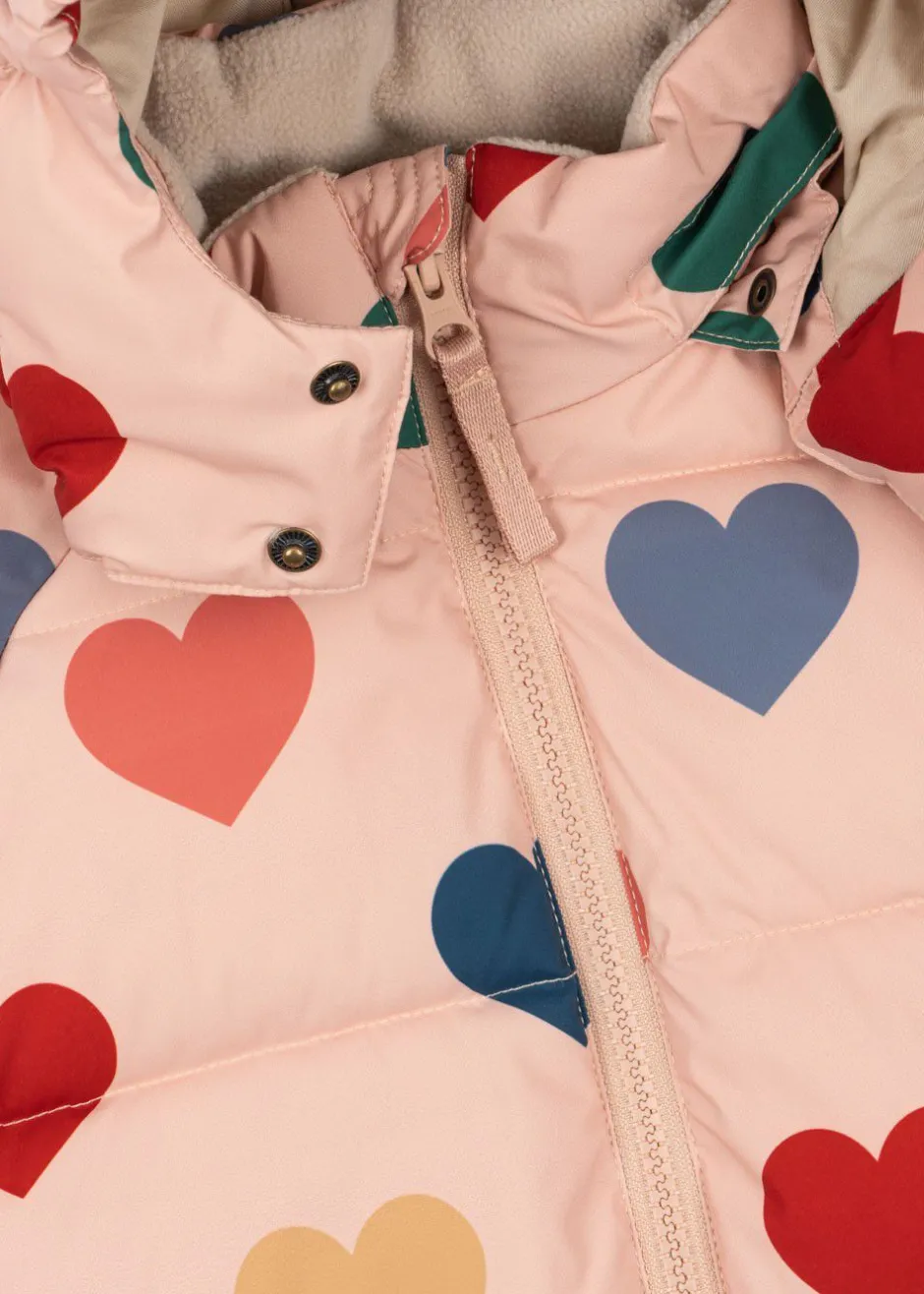 Nuka Jacket Grs fra Konges-Sl-Jd er den perfekte jakke til de kolde dage, hvor dit barn skal holde sig varmt og se godt ud. Denne jakke kombinerer funktionalitet med et legende design, der gør den ideel til både leg i sneen og hyggelige udflugter. Med sit farverige hjerteprint vil dit barn elske at iføre sig denne jakke, som samtidig holder dem godt beskyttet mod kulden.