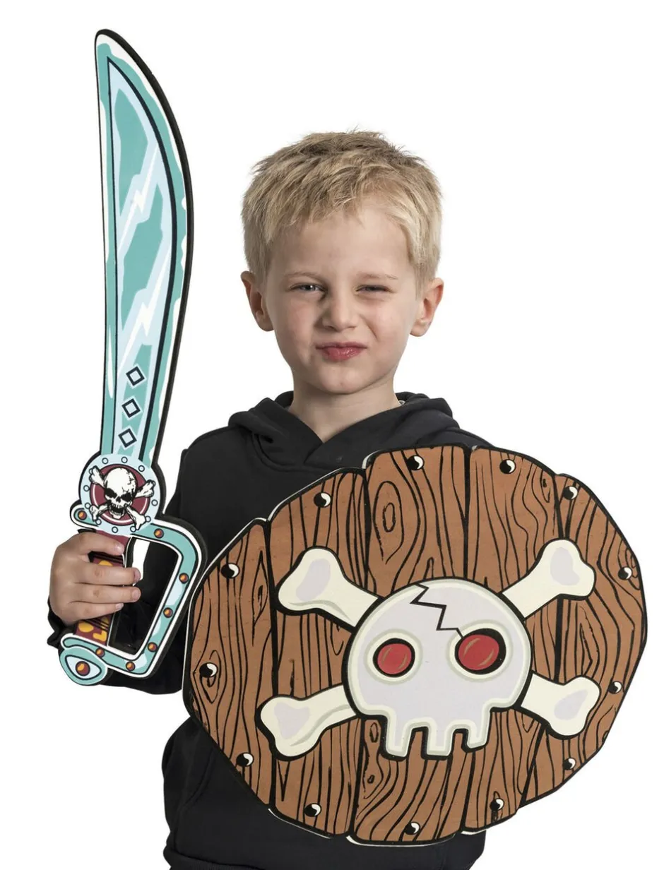 Piratskjold og -sværd i skum