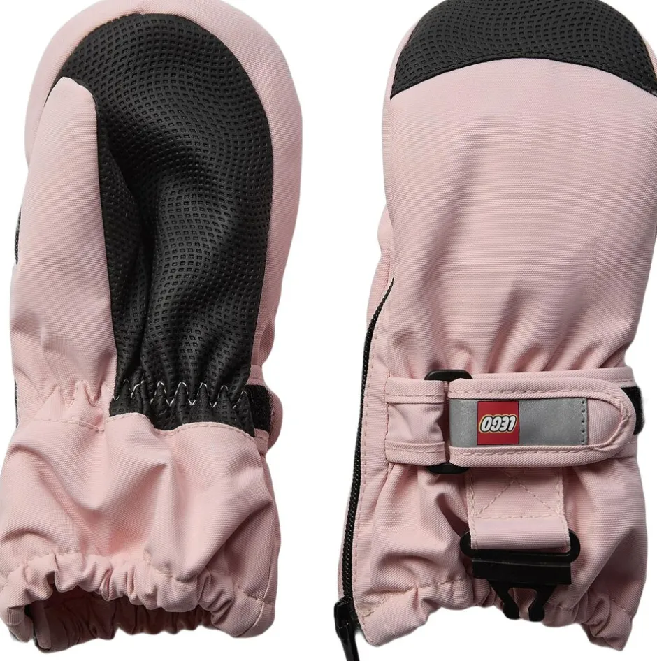 - Der er et sikkerhedsspænde på lufferne til at klikke dem fast til ærmerne på LEGO vinterjakker eller flyverdragter. Hvis der rykkes i luffen, løsnes den fra ærmet, og det mindsker risikoen for uheld, hvor barnet hænger fast i noget.