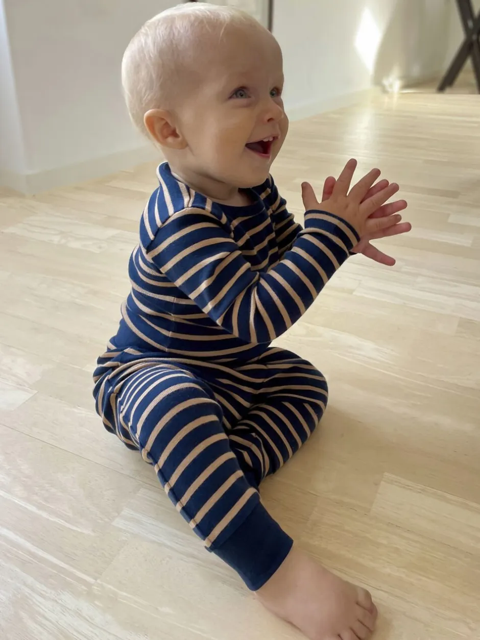 Bukser fra Magasin du Nord Collection i den blødeste kvalitet af 100% økologisk bomuld med GOTS-certificering. Bukserne er enkle i modellen med smalle striber, brede rib- og elastikkanter samt en løs pasform. Et par skønne bukser i den lækreste kvalitet.