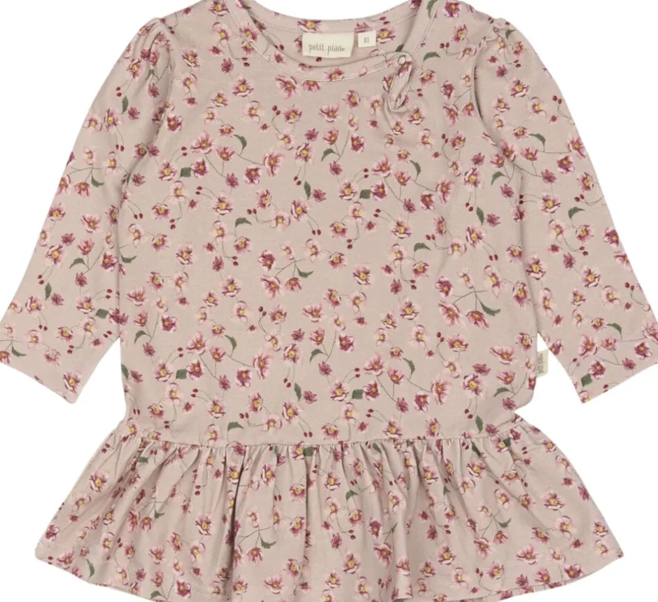 Langærmet kjole med et smukt akvarelprint fra Petit Piao i økologisk bomuld. Printet er inspireret af den danske natur. I venstre side af halsåbningen har vi vores signaturåbning med trykknap for nemt tøjskift. Kjolen har et lille pufærme og rynk i bunden for at give det feminint udtryk. Materialet er blødt og strækbart, designet til komfort og leg. Produceret i Indien.