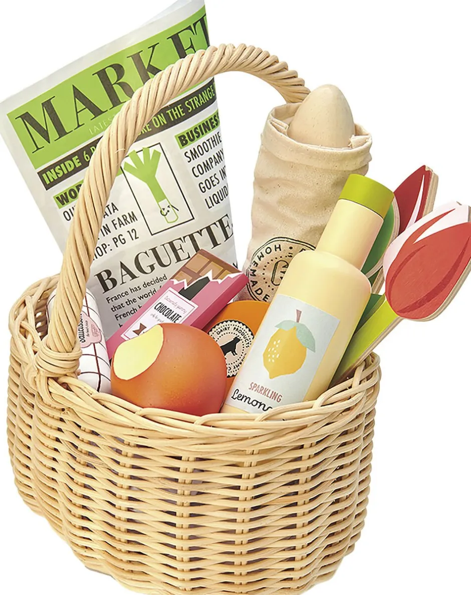 Smuk og håndlavet fletkurv med markedsvarer i autentisk, sydlandsk stil.