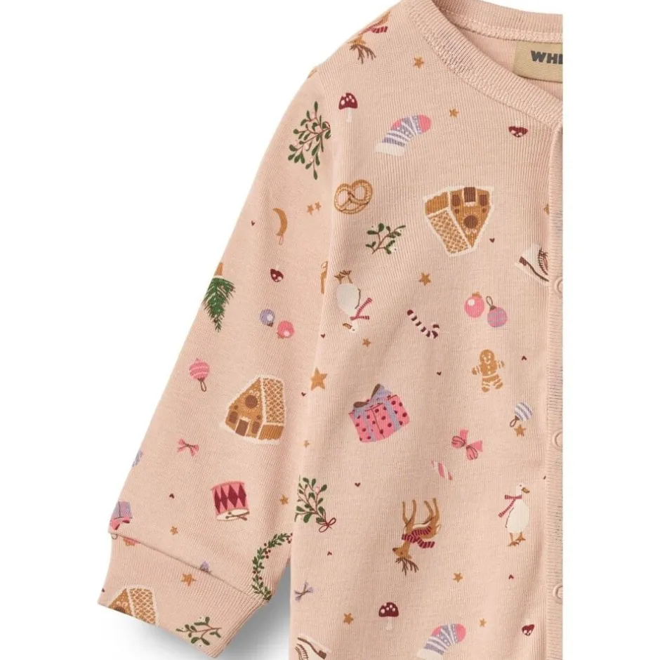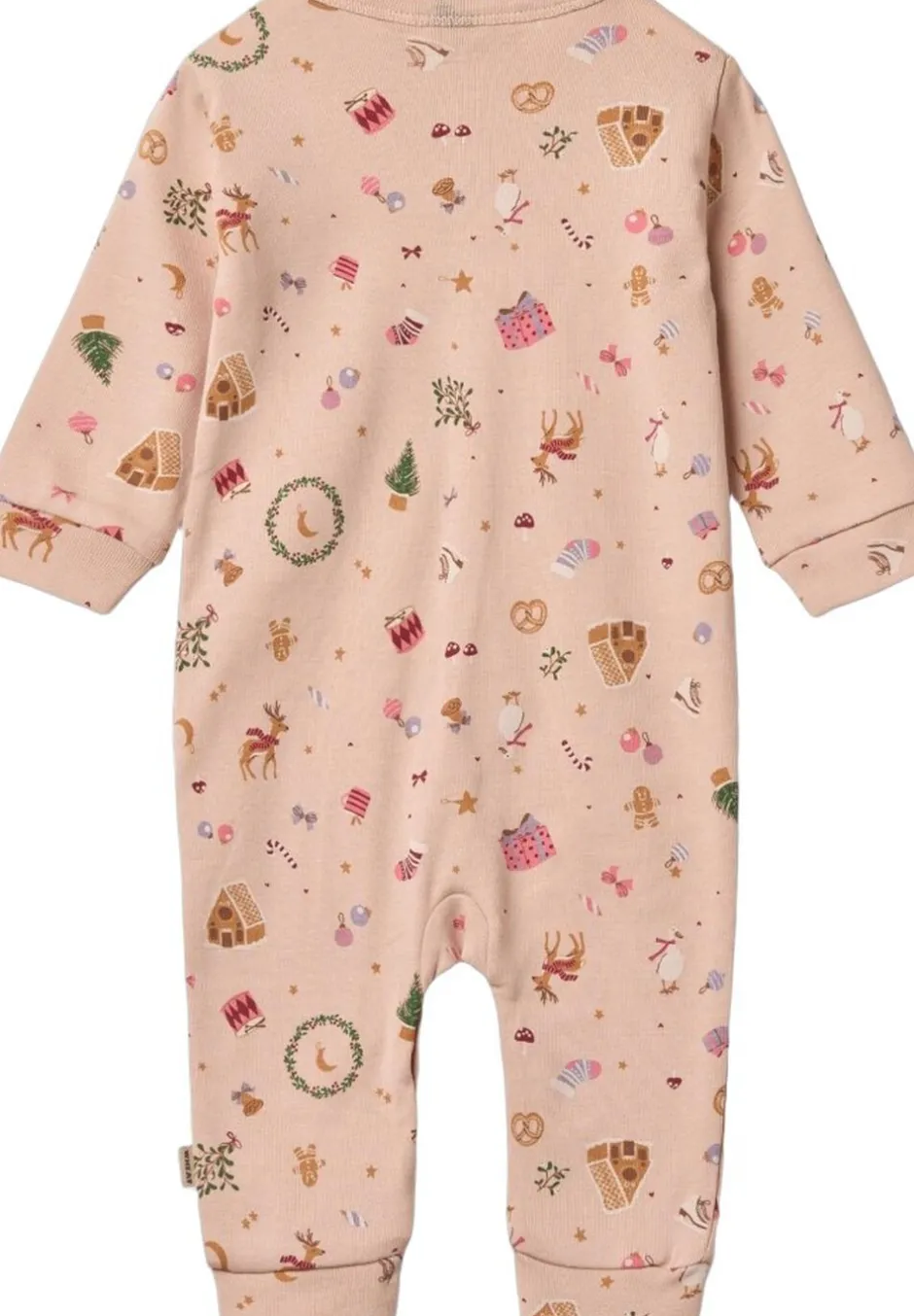 Langærmet heldragt med julemotiver i blødt økologisk bomuld til din baby. – Normal/Løstsiddende pasform – Trykknaplukning ned ad fronten og langs indersømmen af det ene ben – Brede manchetter ved håndled og ankler – Signaturprint med julemotiver Denne heldragt med julemotiver er perfekt til søde juledage indendørs. Den har trykknapper ned ad fronten og langs indersømmen på benene, hvilket gør det lettere for dig at klæde din baby på. Heldragten kan bruges alene om natten eller som et ekstra lag under hverdagstøj. — – Standard 100 by OEKO-TEX® – 100% Økologisk bomuld – GOTS certificeret