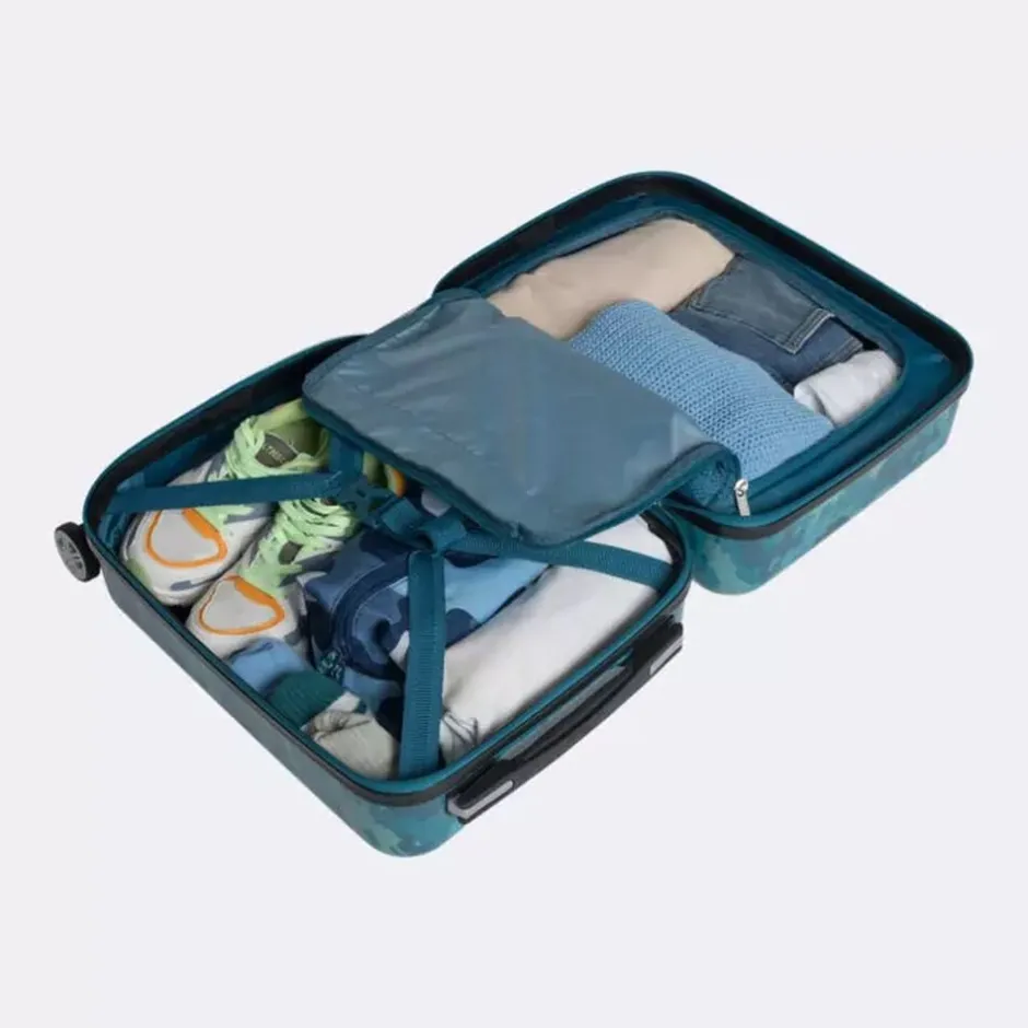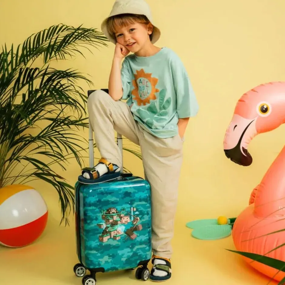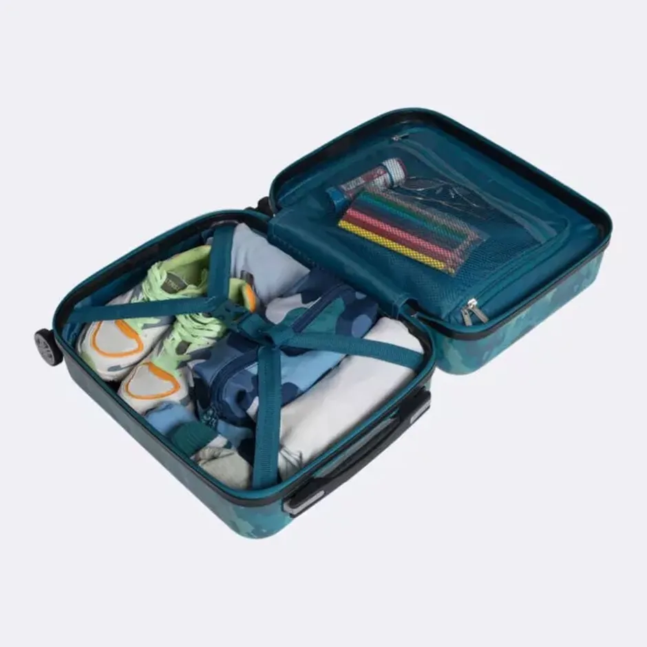Det er stort at få sin første kuffert! Vores børnekuffert har et magisk design, som virkelig skiller sig ud i mængden. Målene på kufferten tilfredsstiller kravene for håndbagage/kabinekuffert hos SAS og Norwegian. Børnekufferten har 4 dobbelte, stærke og stillegående 360°-spinnerhjul, som gør den let at trille. Med lynlåse i god kvalitet holdes dine ejendele trygge under rejsen. Helforet inderside, opdelt med netlomme, pakkestropper i bunden og et adskilt rum i låget. Integreret teleskophåndtag aflaster arm og skulder for unødig tyngde.